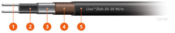je samoregulačný kábel vhodný na ochranu odkvapov a zvodov. Výkon je 20 W/m pri 10 °C na vzduchu a 38 W/m vo vode. UV odolnosť zaručuje dlhodobú životnosť. Line™ZlabF 20-38 W/m má fluórpolymérový (teflonový) vonkajší plášť, preto je vhodný pre agresívne chemické prostredie, alebo asfaltové (bitúmenové) strechy.